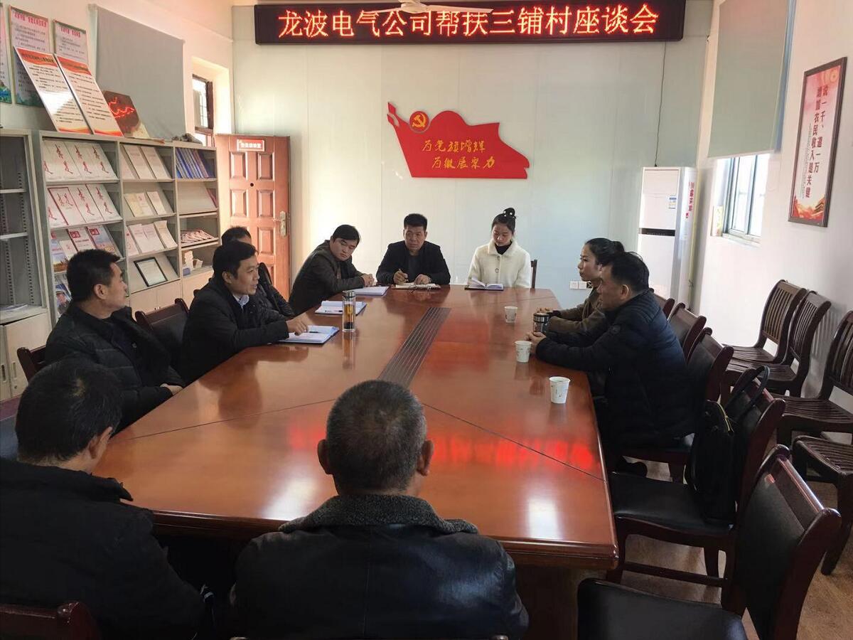 为落实帮扶责任,更好的提升帮扶成效,在2019年的扶贫日活动中,公司认领了四铺镇三铺村的电脑及路灯项目。11月28日上午,安徽龙波电气有限公司董事长陈文军一行到该村开展帮扶活动,现场捐赠了四台办公电脑,并与驻村工作队、村“两委”就脱贫攻坚工作举行座谈会。 自2014年起,公司就积极履行企业的社会责任,与四铺镇三铺村结成帮扶对子,每年进行帮扶、慰问,为该村解决生产和生活上的实际困难,改善该村的生产生活条件。此次捐赠活动是深入落实企业帮扶责任的具体体现,也是企业应有的社会责任和担当,实实在在的为困难群众和贫困户做些实事,为淮北的扶贫攻坚工作做出公司自己的贡献。